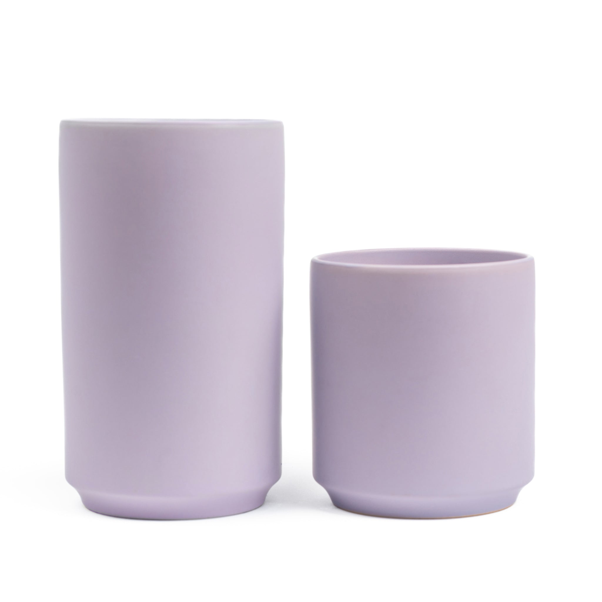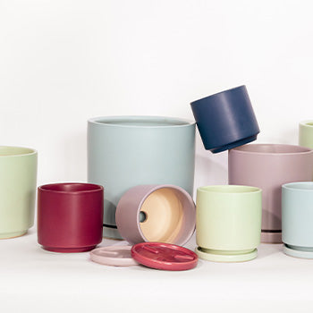 The moment our founder Blaine saw a peaceful photograph of a periwinkle cloud over a pastel seascape, she was instantly inspired to create this limited collection. The Fresco Collection features Air Blue, Periwinkle, Sangria, Sage and Lavender colors in high-quality porcelain. These colors are a celebration of vacation vibes and blooming springtime flowers. This collection is available in cylinder pots, vases, pedestal bowls and low bowls.