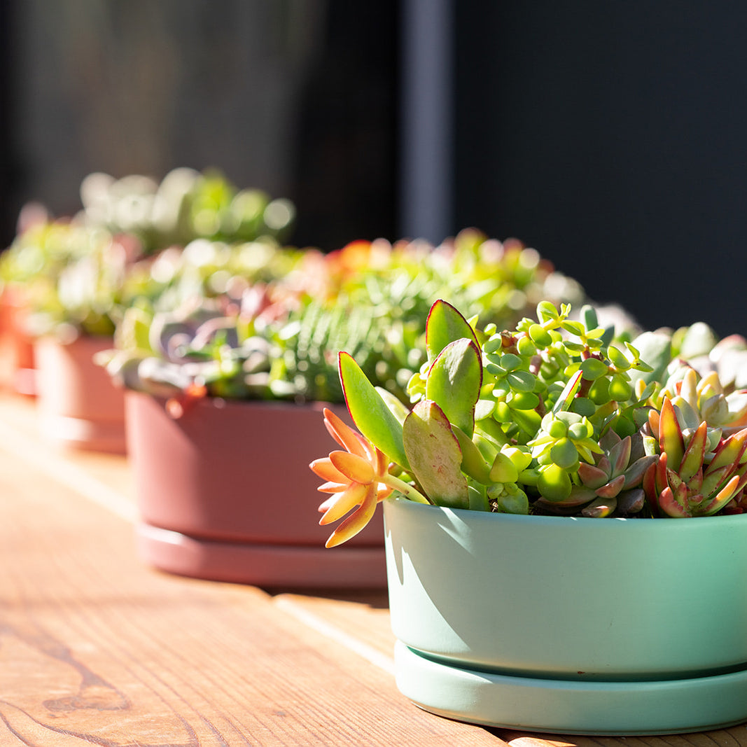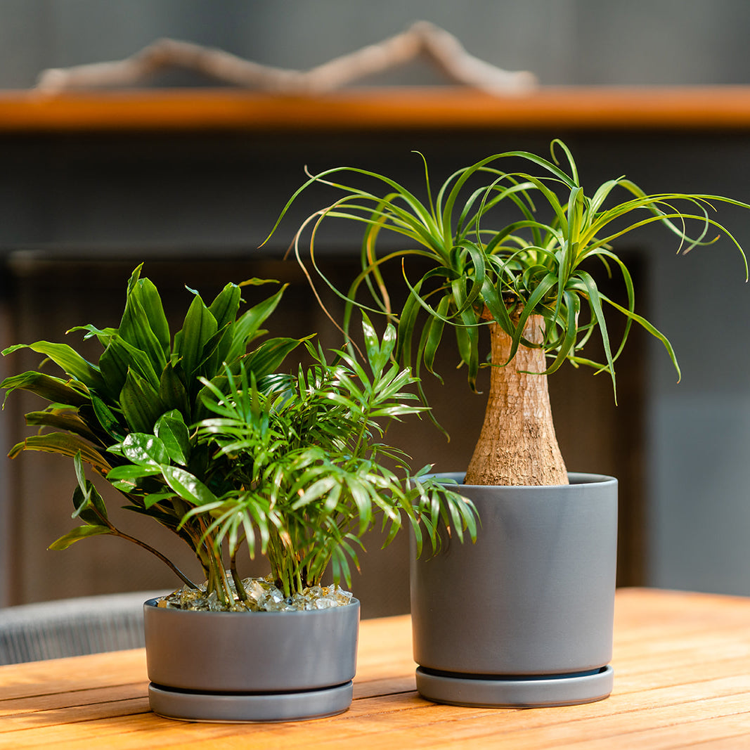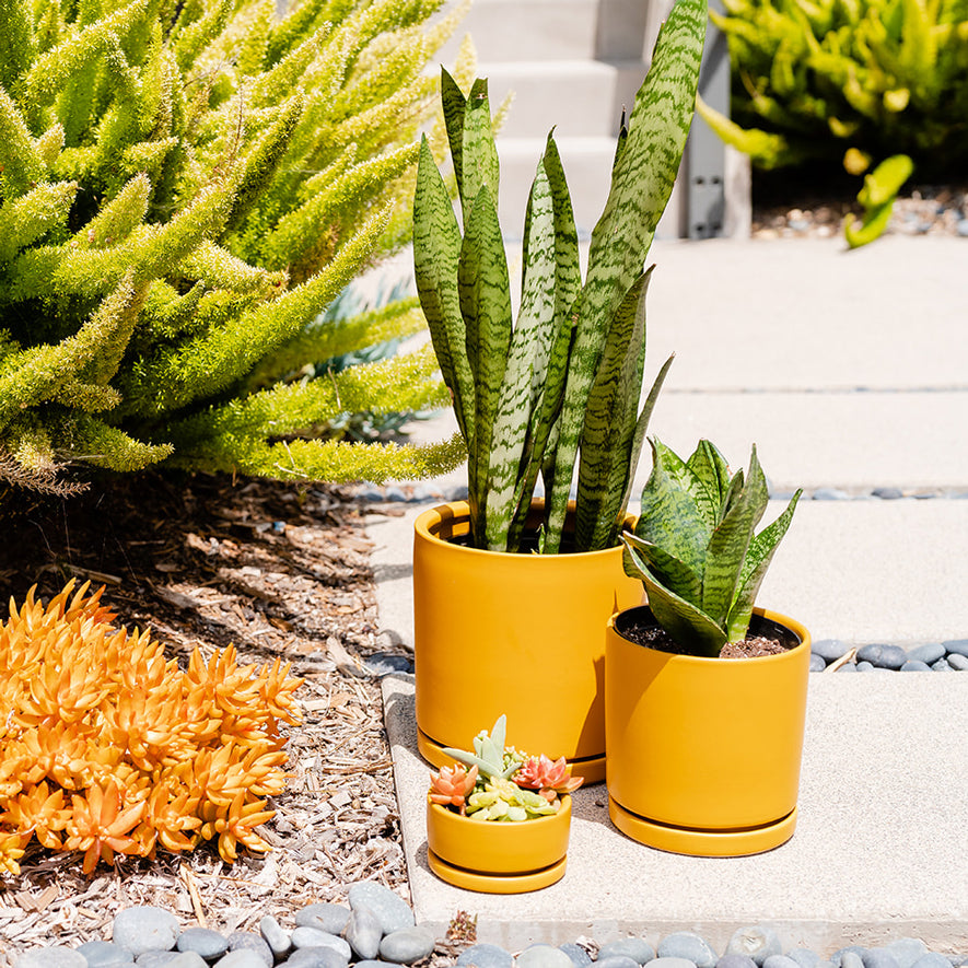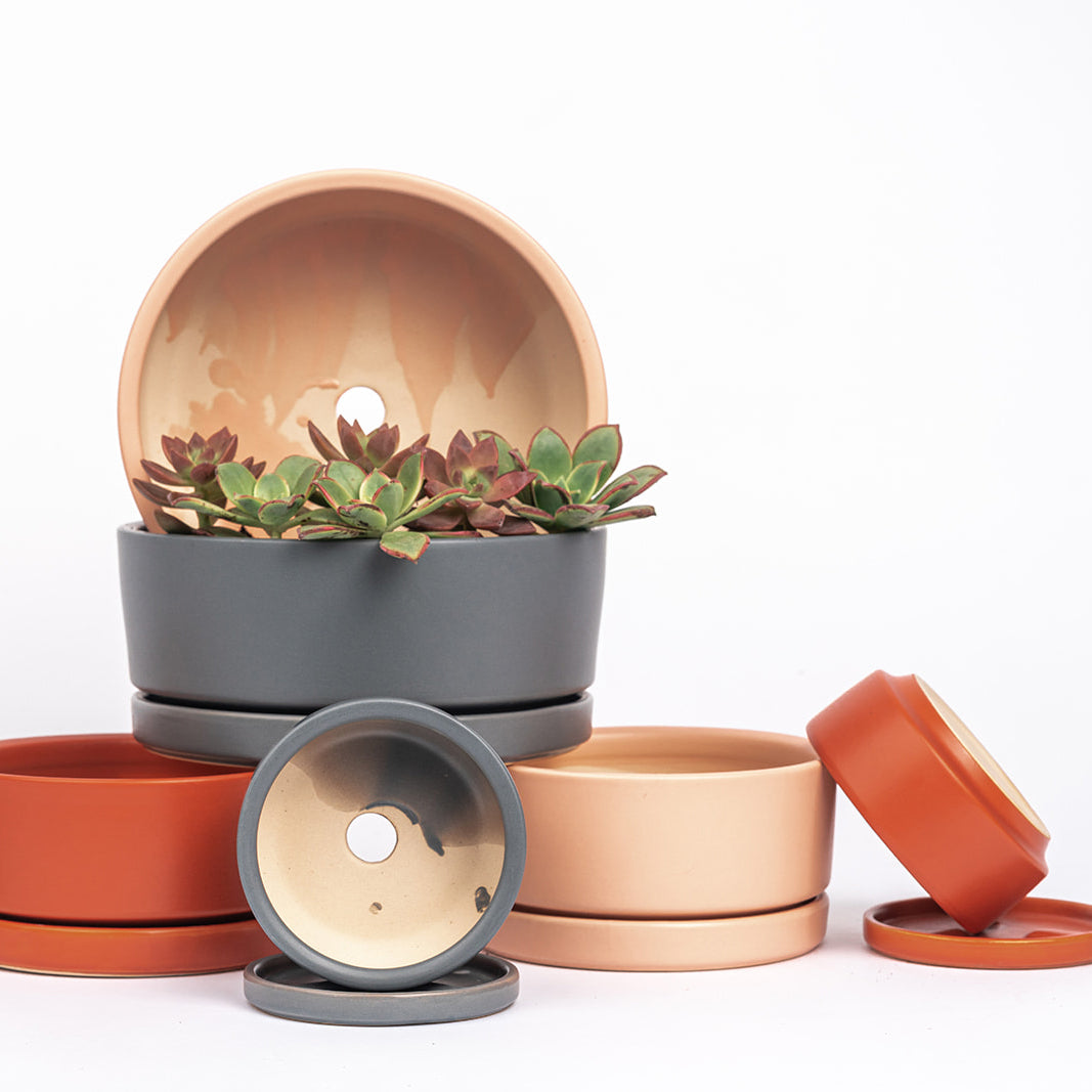 Have you been looking for plant containers in unique, modern shapes with a water tray, or maybe you needed a specific color to match your decor? We have just the thing! Our Gemstone Collection of plant containers is a match made in plant parent heaven. The impeccably designed plant pots offer a modern shape for every need—cylinders, pedestals, and low bowls that plants love, from philodendrons to fiddle leaf figs. The containers also come in many different sizes, as well. The sleek and sturdy one-of-a-kind shapes are fashioned from high-quality porcelain, while an inspired palette of eye-popping colors makes these matte modern plant pots the perfect addition to your space. Each of our gemstone collection pots also comes with a matching footed water tray. They feature drainage holes in the bottom of the pots to give the plants the best home to grow.