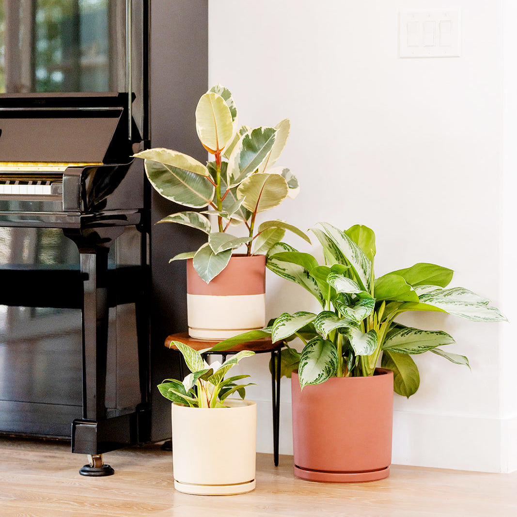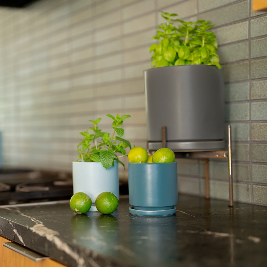 Our Gemstone collection is a match made in plant parent heaven. The impeccably designed containers offer a modern shape for every need—cylinders, pedestals, and low bowls that plants love, from philodendrons to fiddle leaf figs. The sleek and sturdy one-of-a-kind shapes are fashioned from high-quality porcelain, while an inspired palette of eye-popping colors make these matte pots truly sing.