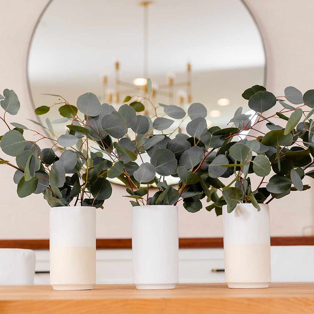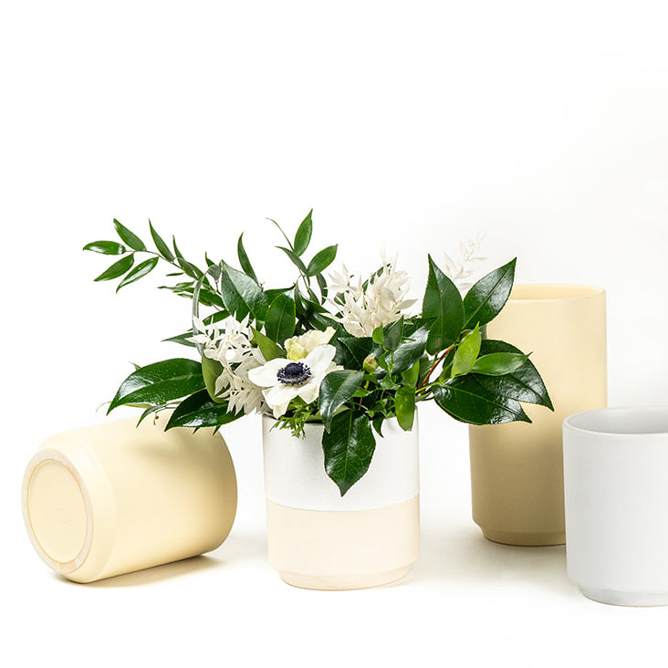 The Gemstone Collection features sleek and sturdy one-of-a-kind shapes are fashioned from high-quality porcelain. Top Half White is modern take on a crisp white pot that pairs well with all the colorful Gemstone pots and also shines on its own as a neutral color palette.