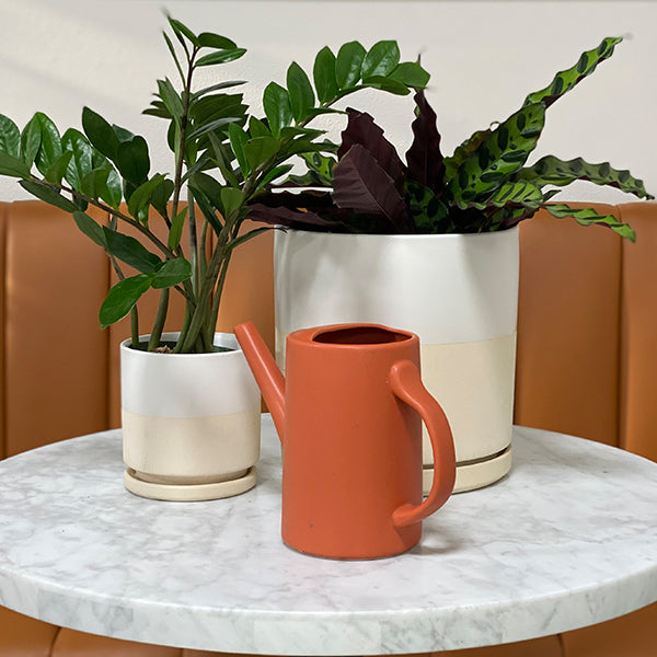 Watering Cans are available in an array of rich, beautiful colors to match our expanded Gemstone Collection. These Watering Cans will help deliver sustaining water and nutrients to plants and are suitable for outdoor use. Fill them easily at the top 3" x 2" half moon shaped opening. The smooth, easy to grip handle makes this Watering Can comfortable to carry and angled taped spout makes it easy to control the flow of water so you can give your plants a gentle drink.